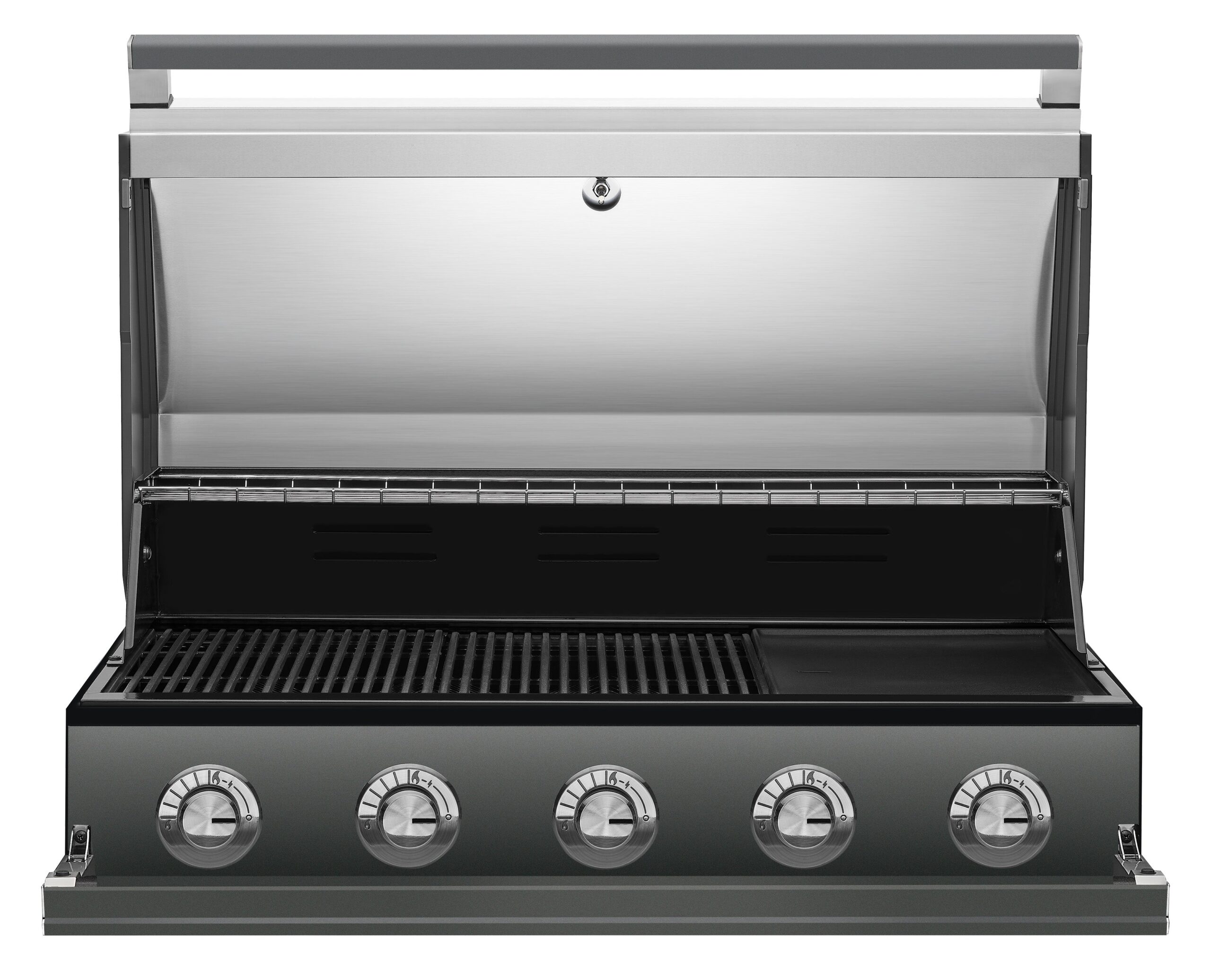 - A rollback hood that allows the BBQ to sit snugly against the wall