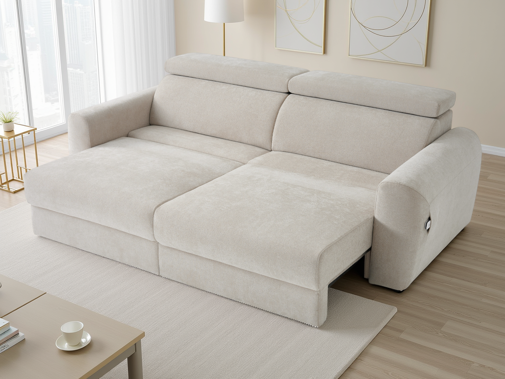 Experience ultimate versatility with the Dakota Electric Reclining Sofabed. Featuring seamless power-sliding seats and adjustable headrests, it transitions effortlessly from a sleek sofa to a spacious bed.