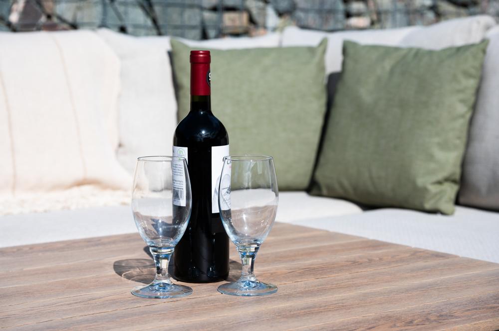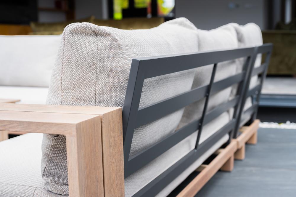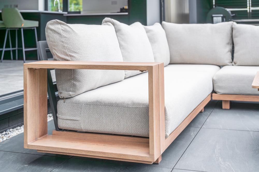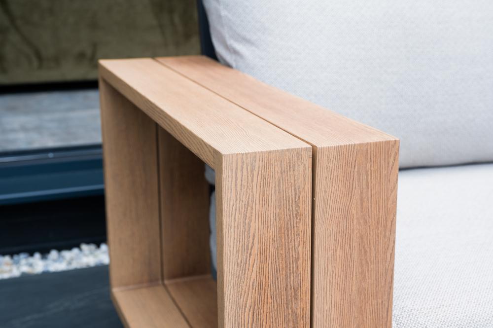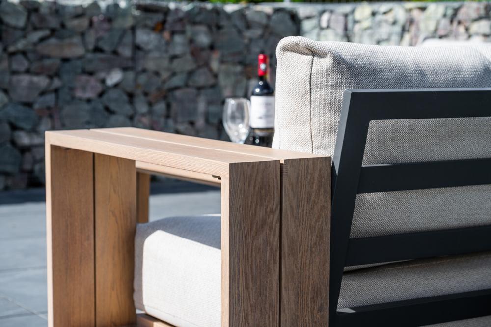 - Chunky armrests and frames provide comfort and shelving space