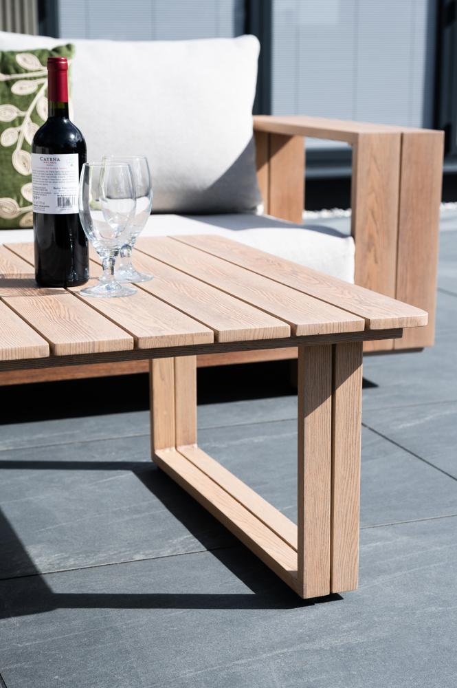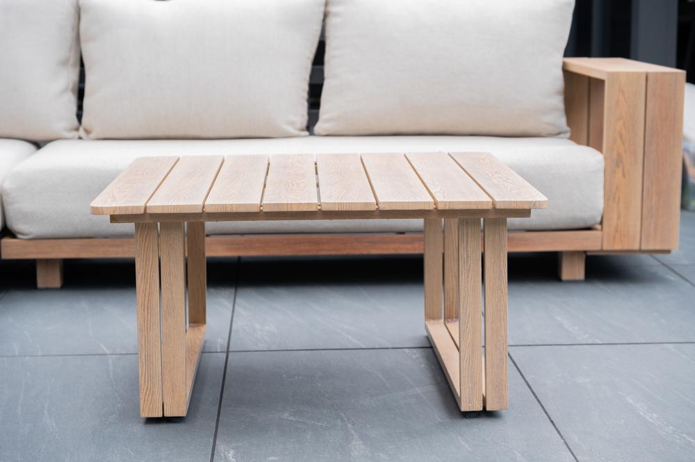 - Heat-transfer natural oak effect on powder-coated aluminium framing.