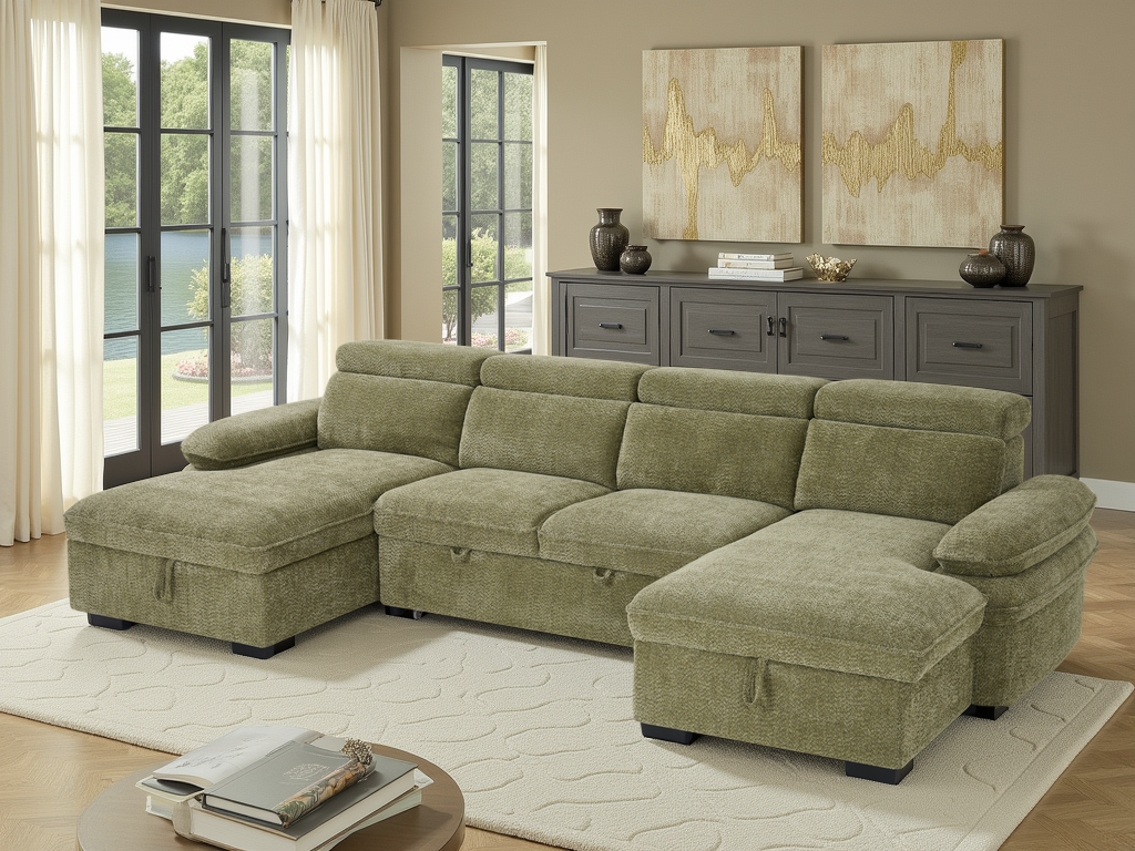The Hudson U Shape corner sofabed sofa offers sleeping space, storage, adjustable arms and adjustable headrests. This modern design is upholstered in a stunning textured fabric, with plenty of colour choice.