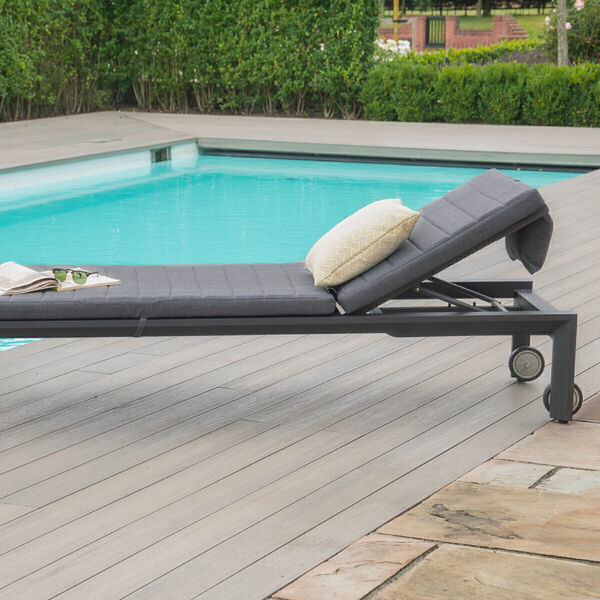 The Maze Manhattan Sun Lounger is simplistic yet chic with its grey aluminium framework which is entirely maintenance-free. It features a ribbed padded cushion for maximum comfort and can be reclined fully flat. The wheels on the legs of the lounger allow it to be easily moved to whichever part of your outdoor space you desire.
