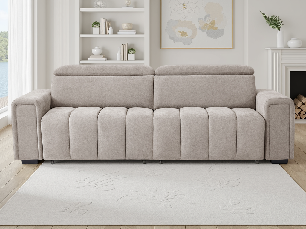 The Molly is all about low-profile style and high-end comfort. Featuring independent power sliding seats and adjustable headrests, it lets you lounge your way at the touch of a button. Available in Beige, Green and Grey, its modern vertical tufting makes it a standout piece for any living room.