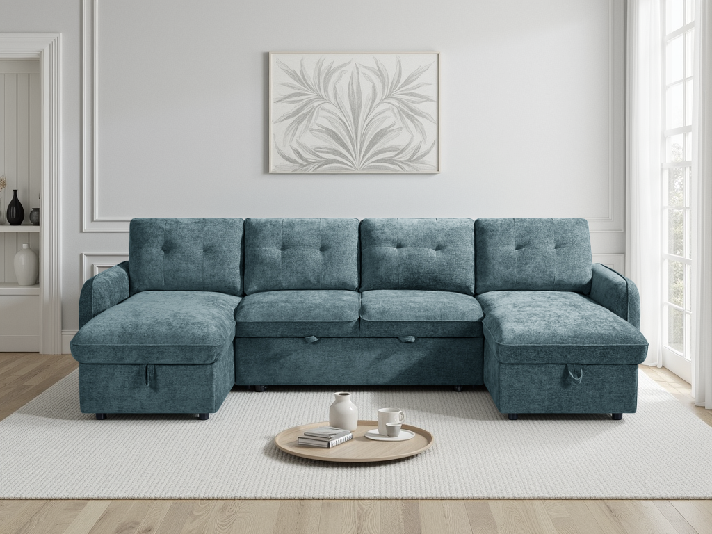 Available in Grey, Brown, Beige and Green, the Moscow Large U Shape Corner offers storage and sleeping space. Modern yet functional, with four modern colours to choose from.