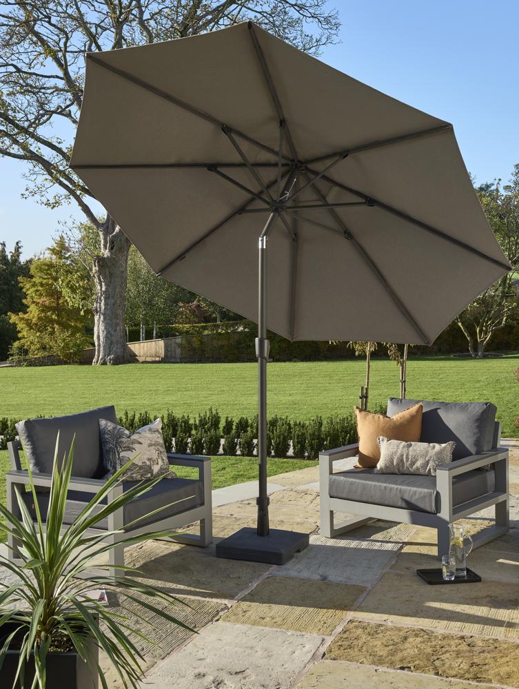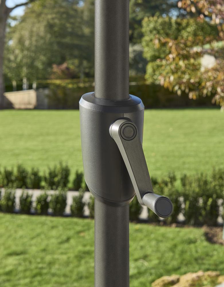 - With an easy use crank for raising and lowering your parasol and a push button tilt arrangement to angle into the sun