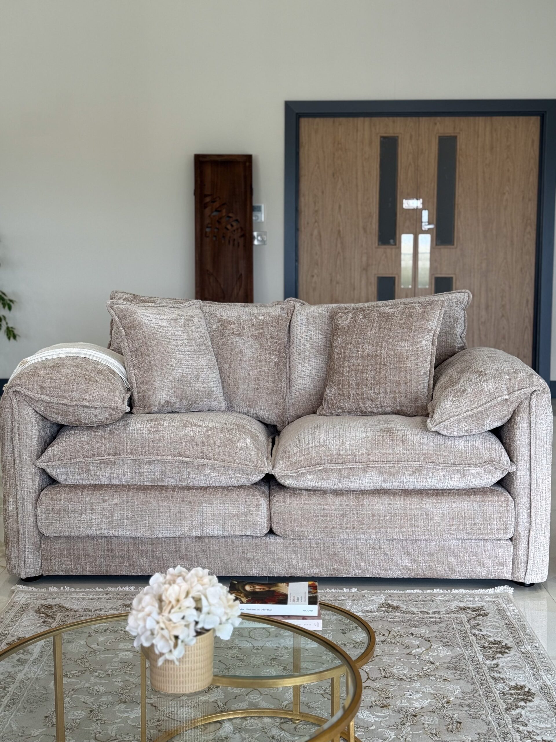 Find ultimate comfort in the Solaya collection. Wrapped in plush chenille fabric, it features a 7cm pocket coil core sandwiched between high-density foam for superior support. This multi-layered construction, finished with plush fiberfill cushions, ensures a perfectly balanced, cloud-like seating experience that lasts.